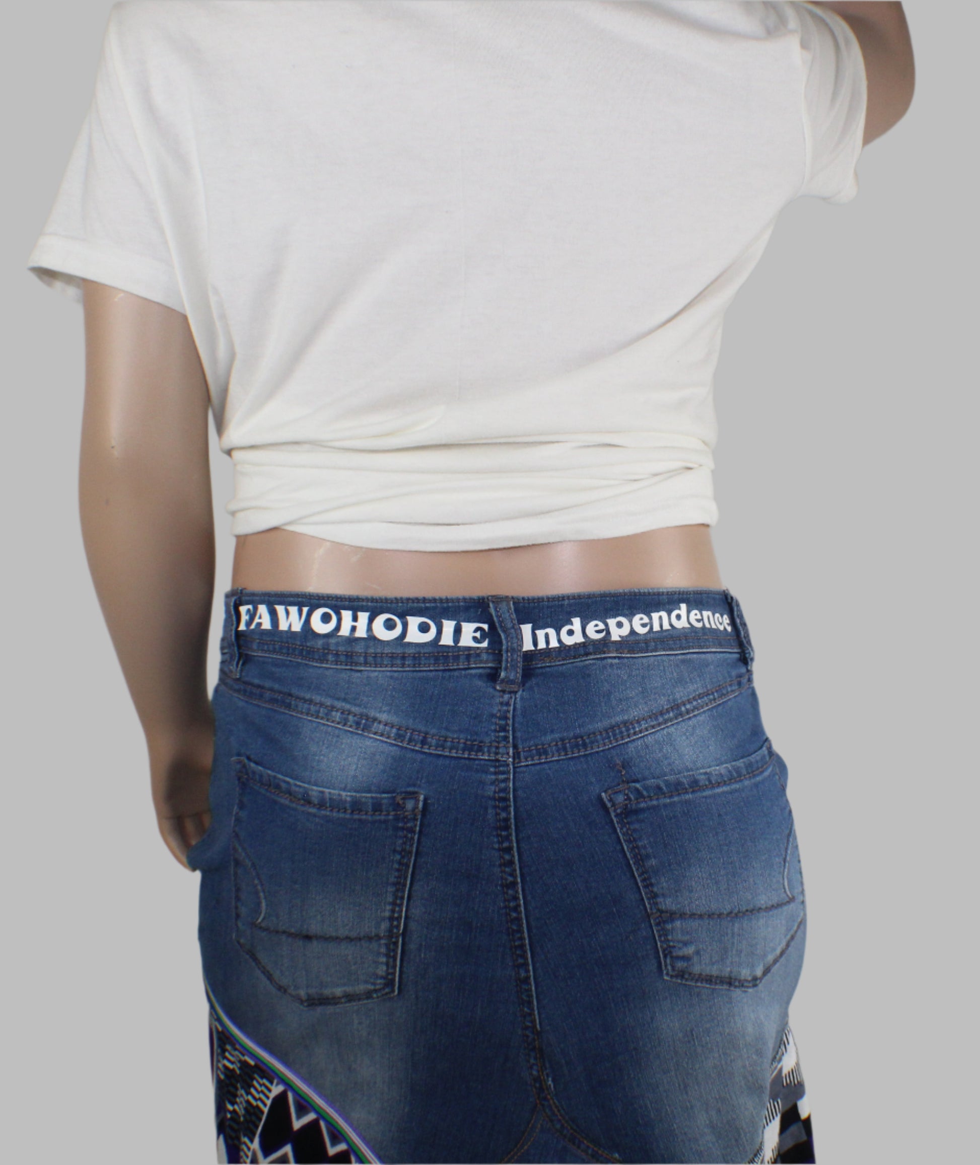- Vinyl text on back waist band ‘Fawohodie Independence’