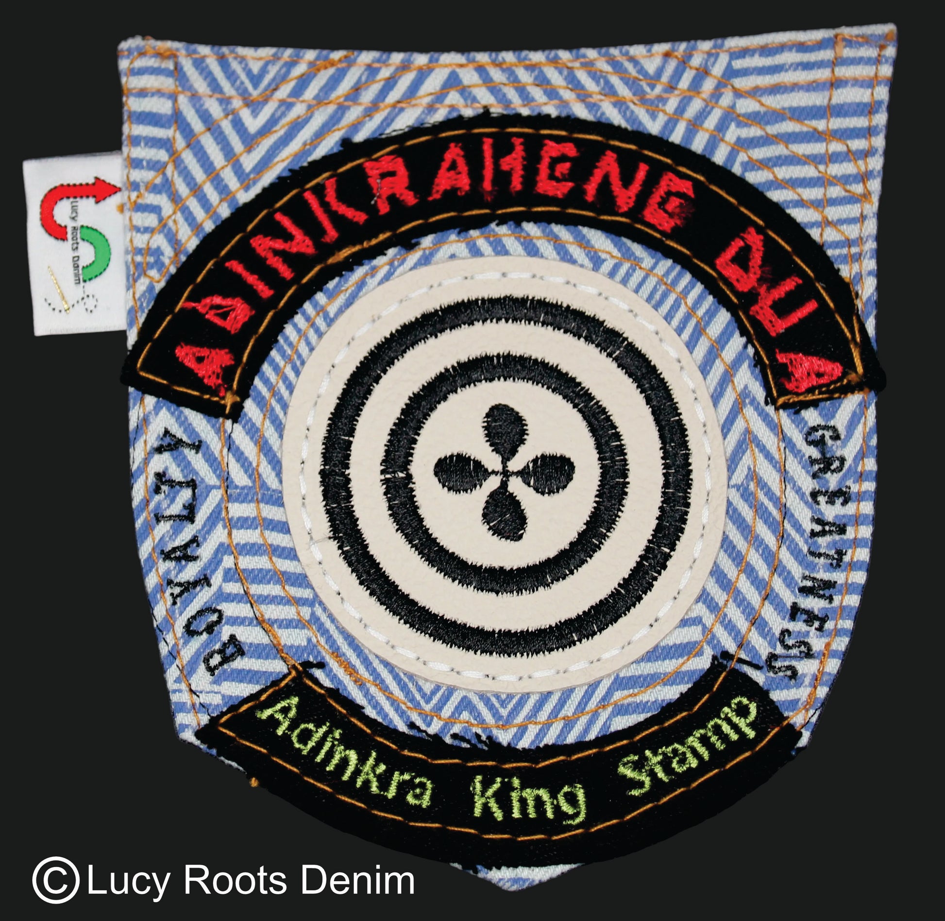 Adinkrahene Dua King Stamp # 3 Upcycled jeans Pocket Patch African Diaspora